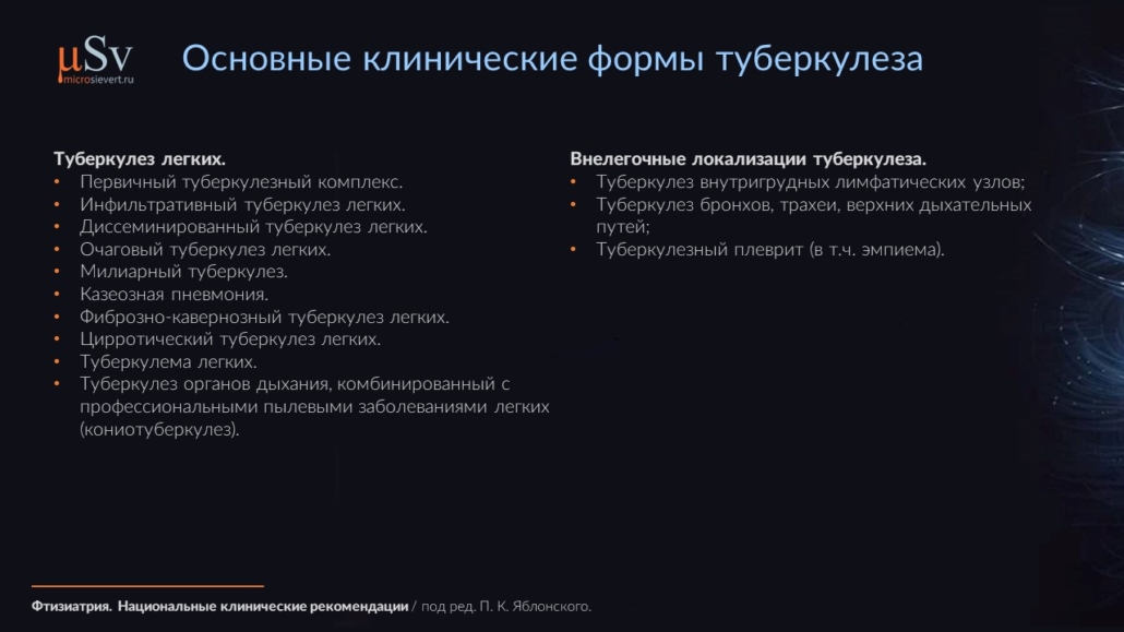 Детальный разбор основных форм туберкулеза легких и внелегочных локализаций с акцентом на их рентгенологические проявления.